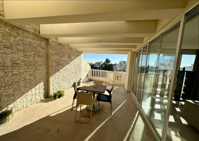For sale 2-bedroom apartment. Furnished. Air conditioning in all rooms. The balcony is 20 m2. Covered parking space. Located in the Engomi area, within walking distance from all amenities.