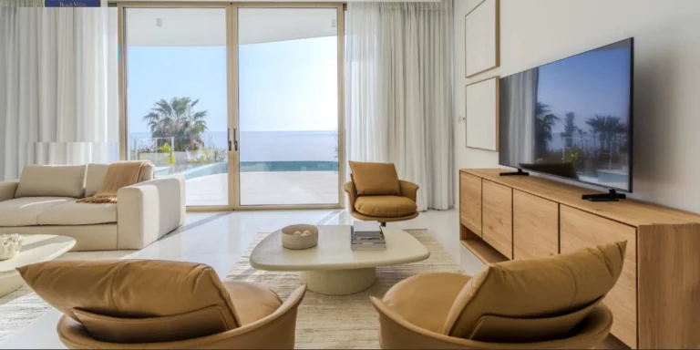 Six Bedroom Detached Villa For Sale In Sea Caves, Paphos – Title Deeds (New Build Process) This is an exclusive luxury villa located just a few minutes walk from the sea in the prestigious area of Sea Caves, Peyia one of the most attractive coastal areas of Cyprus. The project combines modern architecture, premium construction quality and a unique location, offering the future owners an exceptional level of comfort and privacy. The Villa is located on a spacious private plot and offers stunning panoramic views of the Mediterranean Sea. Comes fully furnished and designed using the latest technologies: smart home systems, photovoltaic panels and underfloor heating are installed, creating an ideal microclimate at any time of the year. The infrastructure includes private pool, covered parking spaces, green areas and video surveillance systems to ensure safety and tranquility. This is ideal for both permanent residence and investment in luxury real estate in Cyprus. - Six bedrooms with fitted wardrobes - Open plan living – dining area - Contemporary architectural design - Custom kitchen - Four bathrooms - VRV System - Underfloor heating - Smart Home - Furnished - Car Port - Security Cameras - Landscaped gardens - Private infinity swimming pool - Beautiful sea view - Covered area 446 m2 - Plot 4000 m2 - Close proximity to a number of English speaking private schools - 9 Minutes to Coral Bay Blue Flag appointed beach with its wide selection of restaurants, bars and amenities - 31 Minutes to the nearest golf course - 45 Minutes to Paphos International Airport - Suitable for Cyprus Permanent Residency – Fast Track - Subject to VAT - Energy Efficiency TBC Sea Caves The Sea Caves are located in the north west of Paphos near St. George’s Island (Geronisos) and located near the village of Peyia (also spelt Pegeia), 14km north of Paphos Town and close to Coral Bay at the southern end of the Akamas Peninsula. The Sea Caves themselves have many beautiful natural rocky shores and beach caves to explore are the birthing spot for the rare Mediterranean Monk seals. There is a selection of places to eat and drink with some affording fantastic views over the Mediterranean Sea, perfect for enjoying sunset cocktails. ———— * Title Deeds (New Build Process) * Private Swimming Pool * Panoramic Sea Views * Suitable for Cyprus Permanent Residency – Fast Track * Coastal Location * Off Plan * Energy Efficiency TBC Peyia Peyia County: Paphos Sale Type: For Sale Ref #: EPCC5730/TIC
