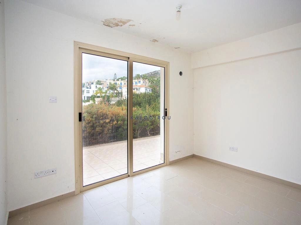Ground floor apartment for sale in Paphos, Pegeia area. It is part of a complex which was built in the year 2007. The apartment consists of an open plan kitchen, living, dining area, one bedrooms, a bathroom and a covered and uncovered veranda. Internal covered area of the apartment is 51 sqm and the covered veranda is 7 sq m and Uncovered Veranda 11 sq m. The residents have also access to the complex’s common swimming pool and other amenities/services.