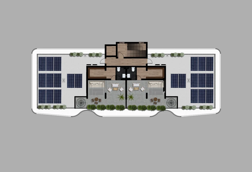 The property features a spacious open-plan living and dining area, three comfortable bedrooms, and private roof terraces with unobstructed sea views, ideal for enjoying the Mediterranean lifestyle and entertaining guests. High-quality finishes, sustainable construction, and abundant natural light create a bright, elegant, and functional living space.