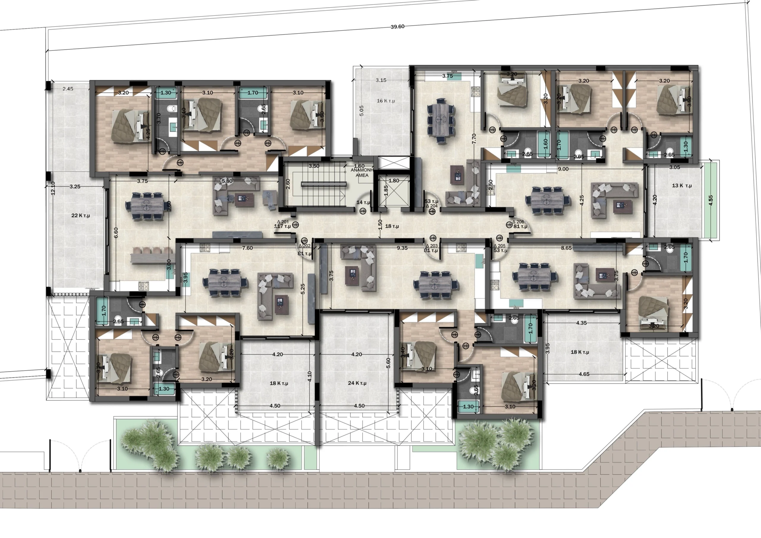 Modern two-bedroom apartment designed for comfort and style. Bright open-plan living areas, spacious bedrooms, and large terraces maximize natural light and create a sense of openness.