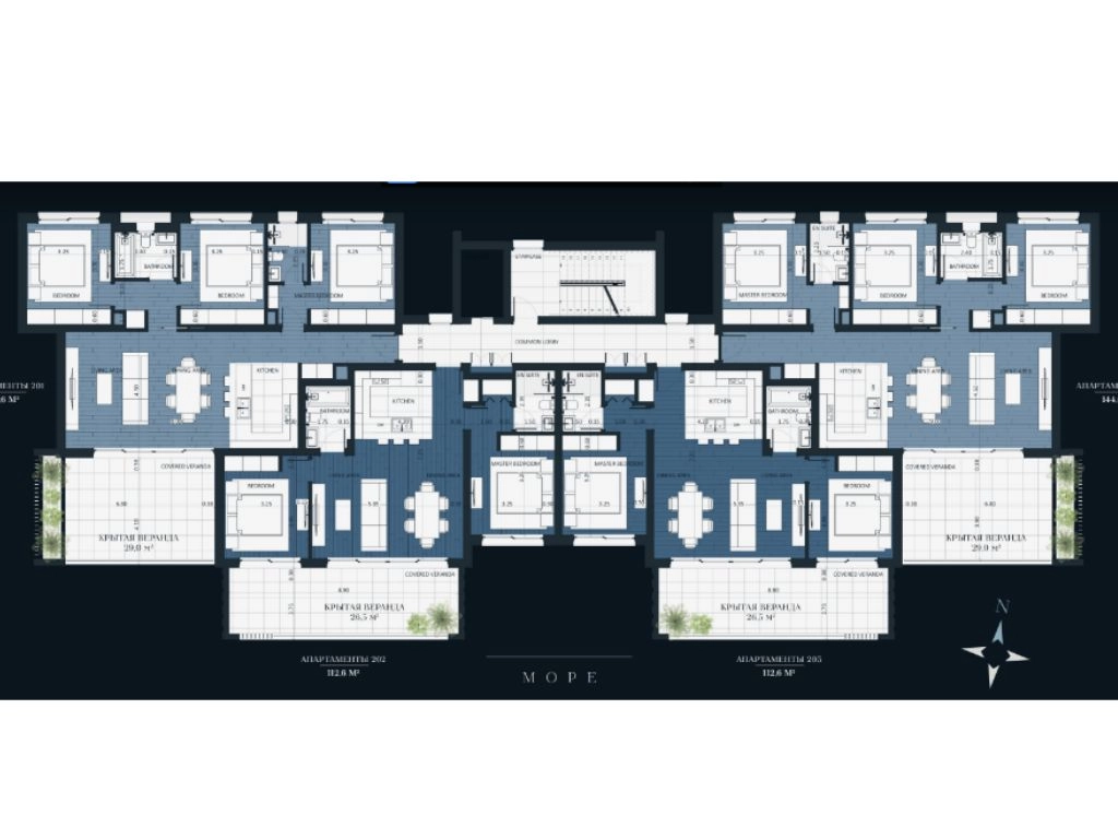 Penthouse for sale in a new premium residential complex in Germasoia, Limassol. The project includes 16 premium class apartments in a thriving area, a central location in the heart of Limassol’s tourist area, where lively life, shops and an endless array of upscale Limassol restaurants reign. Thoughtful space and ergonomic plumbing from leading European brands. Elegant design, attention to detail, high ceilings up to three meters. A modern, comfortable kitchen with granite worktops. Built-in furniture and natural materials. Fire-resistant entrance door with modern locking system. White interior doors. Balcony doors (height: 2.40 m) and windows (height: 1.4 m). Aluminum profile with double glazing and thermal insulation. Glass balcony balustrades. Built-in wardrobes in the bedrooms. Chipboard and white matte finish. Closed protected area. Lockable entrance door systems with a high level of security. Video doorbells in each apartment.Internal area 86.1 m2, Covered veranda 17.5 m2, Outdoor veranda 9 m2, Roof garden 81.4 m2.