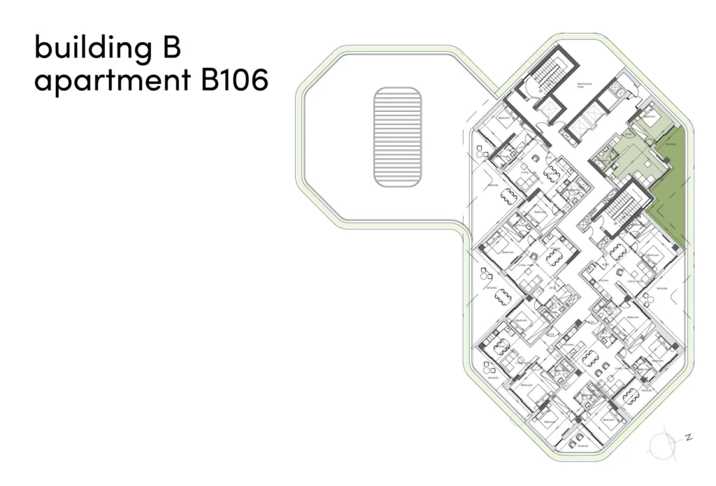 Residences are finished to high specifications, featuring semi-solid parquet flooring, marble-clad bathrooms, and generous ceiling heights of 3.10 meters. Comfort is ensured through underfloor heating, central VRV air conditioning, thermal aluminum double-glazed windows, secure entrance doors, and an intercom system. High-quality sanitary ware, along with premium European kitchen cabinets and wardrobes, complete the interiors. Selected penthouses enjoy private roof terraces with swimming pools, while a communal swimming pool is available for residents of Block B.