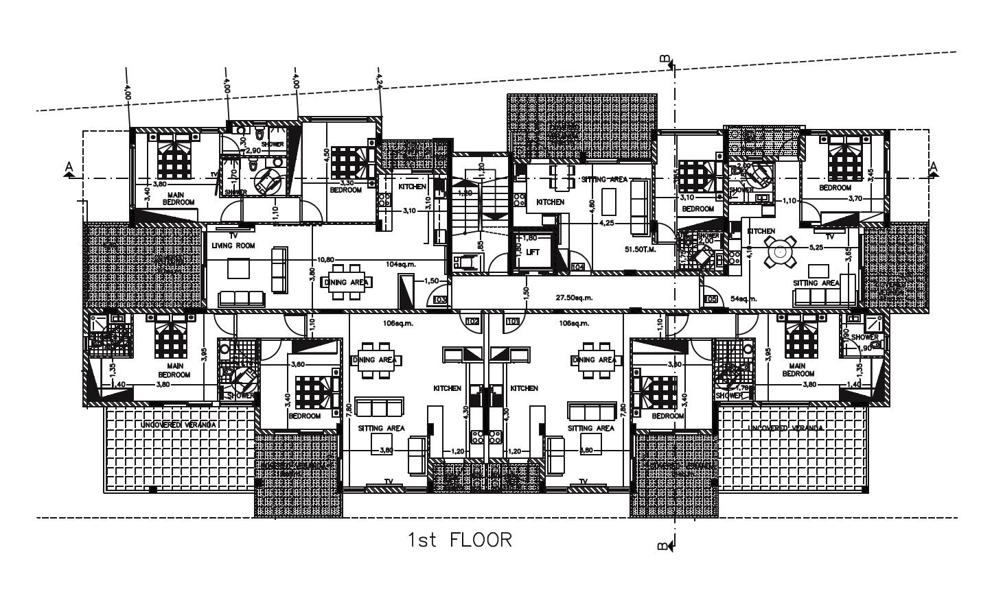 The development consists of a four-storey building including one-, two-, and three-bedroom apartments, as well as three-bedroom penthouses featuring expansive internal areas and wide, well-balanced layouts. The project comprises six one-bedroom apartments, nine two-bedroom apartments, and three three-bedroom residences in total, offering a well-balanced unit mix.
