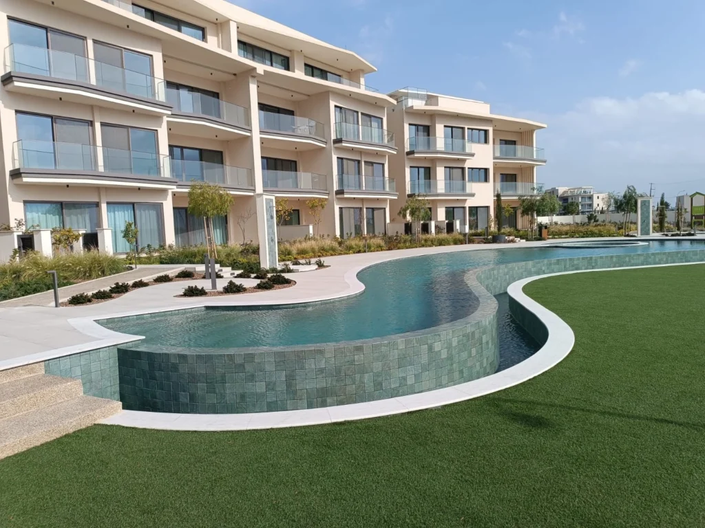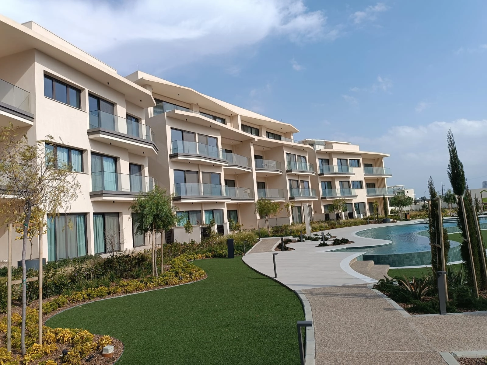 For sale is a spacious, modern apartment located at the Exclusive LIMASSOL GREENS GOLF RESORT in the peaceful area of Tserkez Tsiftliki Located 5 minutes From the Casino Resort With 170 m² of internal space, this ground floor home offers three generous bedrooms and two contemporary bathrooms, providing comfort and functionality for families or professionals.