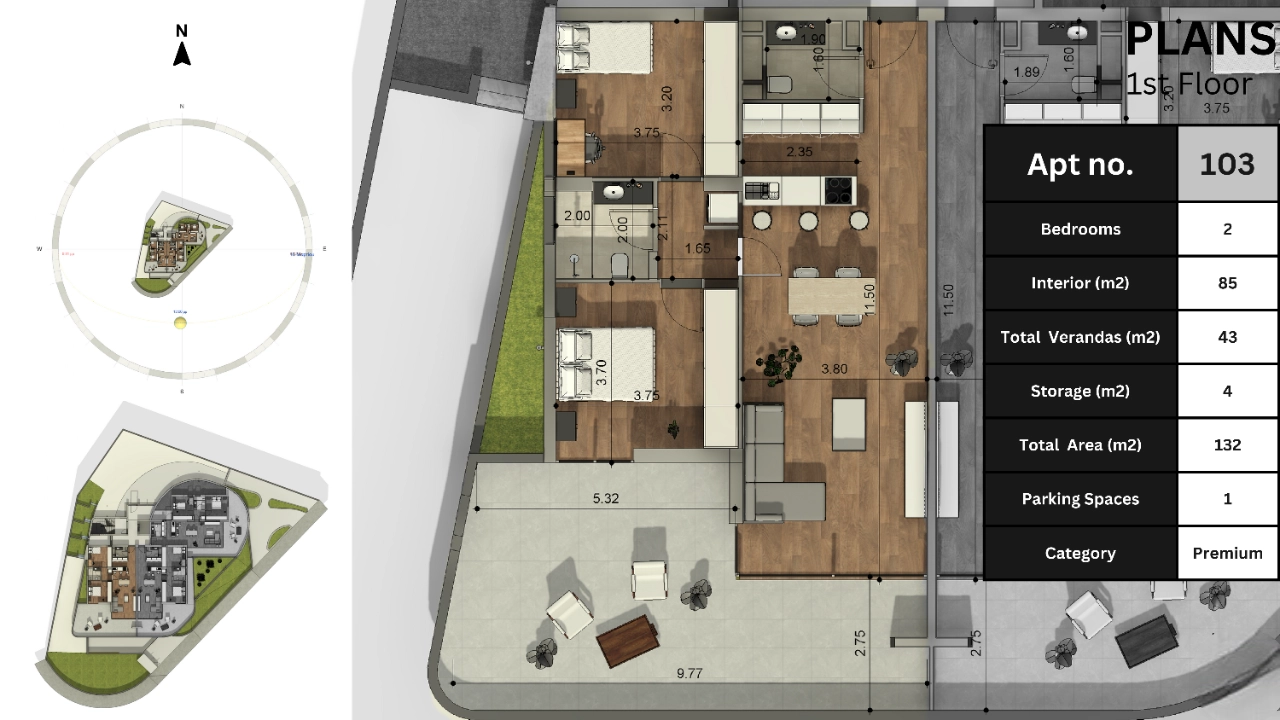 • Internal Area: 85 m²