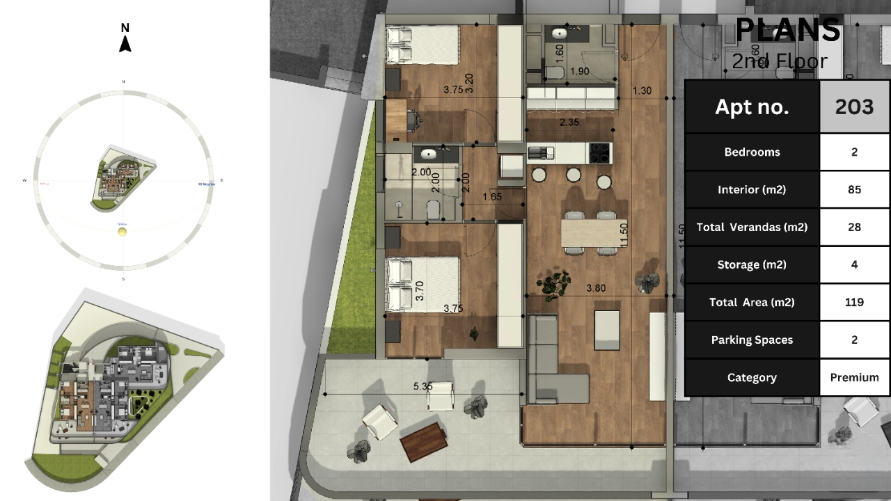 A luxurious two-bedroom apartment in a visionary residential development in Agios Athanasios, Limassol. The apartment offers a spacious open-plan living and dining area, filled with natural light, and stunning balconies with panoramic views.