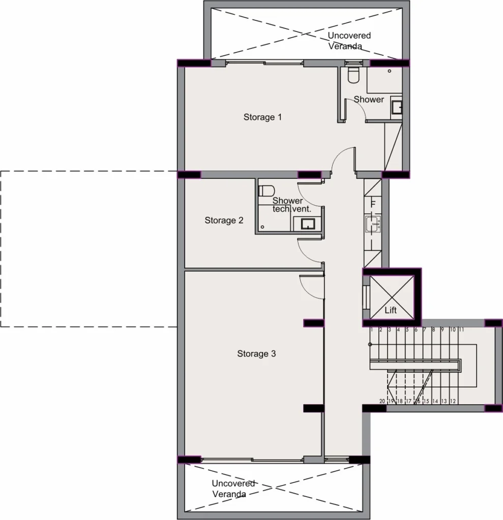 Each villa is arranged across three levels and positioned on a generous private plot. The architecture follows clean, modern lines, with panoramic glazing and carefully structured volumes that maximise natural light and open views while remaining discreetly integrated into the surrounding landscape.