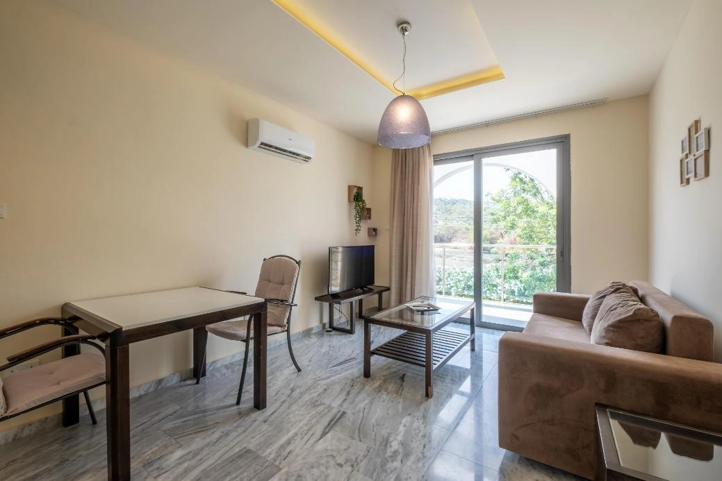 The resort offers excellent amenities, including an outdoor swimming pool with bar, an indoor saltwater pool, and a sauna for ultimate relaxation. Just a short drive away are Latchi Beach, the harbour, Polis Chrysochous, and local historical attractions, making it an ideal location for a holiday home or investment property by the sea.