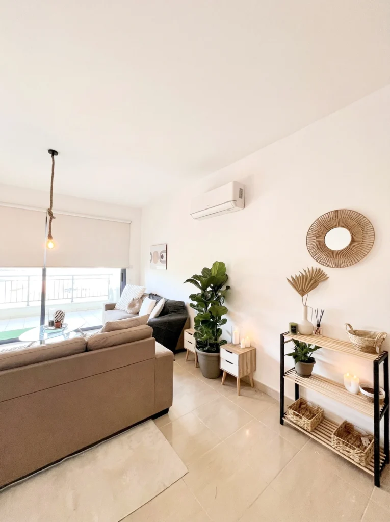 Located within walking distance from the Geroskipou town center, this big 2-bedroom, 1-bathroom offers an exceptional combination of space, comfort, and style.I t includes underground parking and a private storage room. Fully furnished and ready to move in, with a clear title deed — perfect for residence or investment.