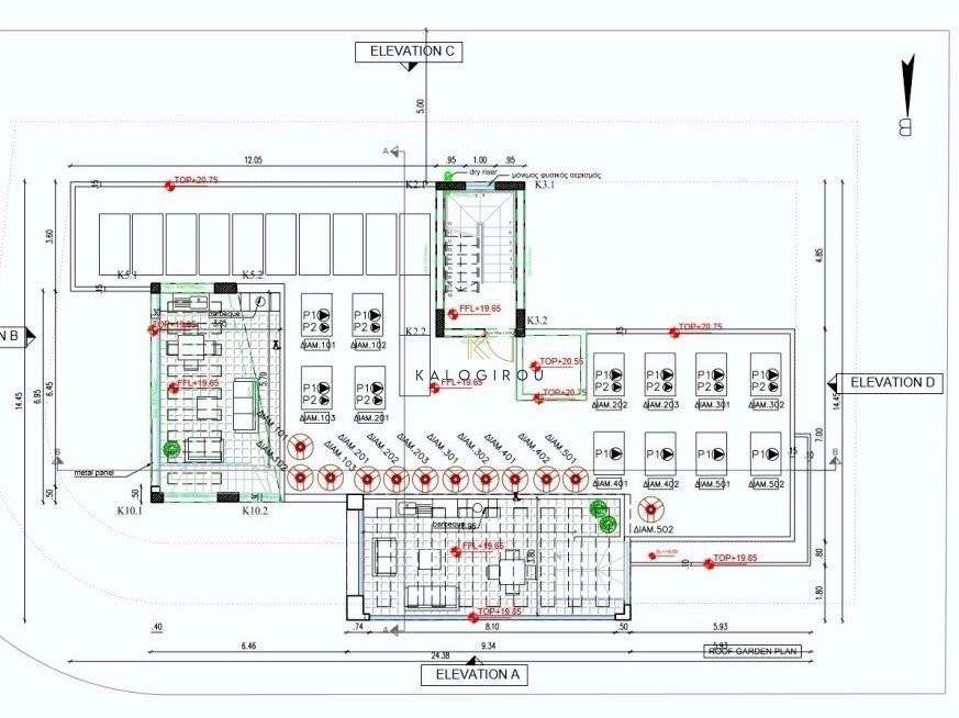 Top Floor Apartment for sale in Port area, Larnaca. The apartment in on the fifth floor, has internal covered area of 85 sq.m, consists of an open space kitchen with living and dining area, provision for A/C, two bedrooms, the master bedroom is en-suite with shower and wc, a main shower with wc, covered balcony of 24 sq.m, 35.8 sq.m roof garden, storage room and covered parking.