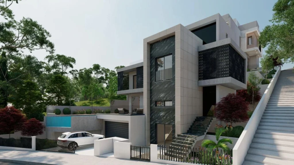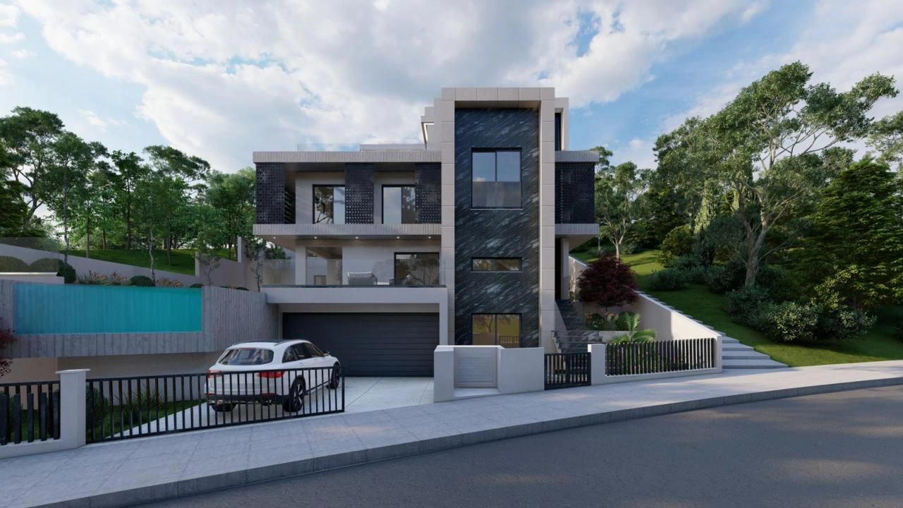 For sale is a modern three-storey four-bedroom villa in the prestigious area of Agios Athanasios (Limassol). Beautiful view of the sea and the city, five minutes from the exit to the highway. A swimming pool and a barbecue area for outdoor recreation. It is fully equipped with air conditioning. Photovoltaic system to save energy, as well as double windows. Elevator from the parking lot to the roof garden. Spacious parking for 4 places. Delivery to the owner 10 months after signing the contract.