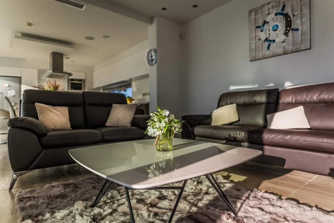 Unique villa for sale in Livadia, Larnaca. Panoramic view of the sea, which is only 1000 meters away. The ground floor is open plan, consists of a large kitchen, a living room with a fireplace and a sitting area, a guest bathroom. On the second floor there are 4 bedrooms, as well as a laundry room. All bedrooms have access to a balcony overlooking the pool. Also on the 2nd floor there is a loft with a beautiful view. Separately, you can select: a service room next to the house in which there is a bathroom, 2 covered Parking spaces with remote control gates. The main entrance is equipped with a communication system, which is available on the entire 1st floor of the villa. All windows and glass elements on the doors are bulletproof. And there is also an external and internal alarm system. 10 minutes drive to the center of Larnaca, quick access to the highway. The sea is about a 5-minute drive away.