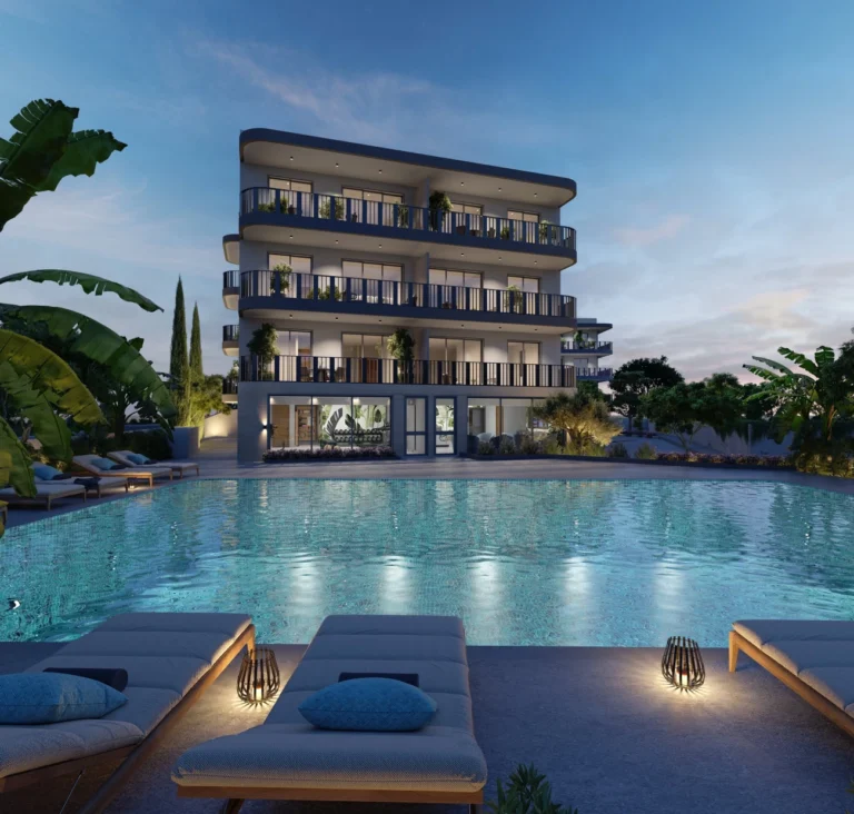 The community consists of multiple low-rise apartment buildings arranged around landscaped gardens and shared leisure facilities. Residents enjoy a communal swimming pool, fully equipped gym, clubhouse for social gatherings, private parking, storage rooms, and controlled entrance for added security and privacy. The architecture focuses on clean modern lines, quality materials, and functional layouts filled with natural light. Spacious verandas extend the living areas outdoors, creating a seamless indoor–outdoor lifestyle ideal for Cyprus living. The project is suitable for permanent residence, holiday use, and investment, offering strong rental potential in a sought-after coastal location.