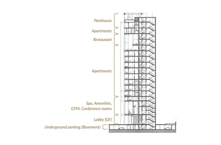 This exquisite two-bedroom apartment is inspired by the Art Deco elegance of the Riviera and designed by Parisian aesthete Thierry Lemaire, blending seamlessly with the natural coastal landscape. Muted tones of marble and wood complement the sand and rock of the coastline, while subtle copper and gold accents evoke the warmth of the Cypriot sun on the Mediterranean Sea. Floor-to-ceiling windows allow natural light to fill the interiors, creating a harmonious connection between indoor and outdoor living.