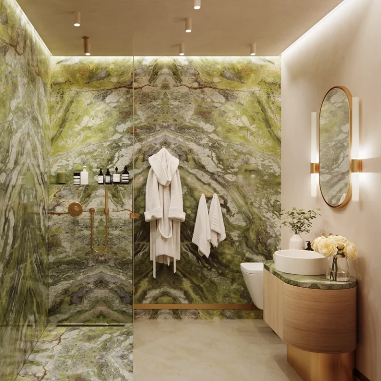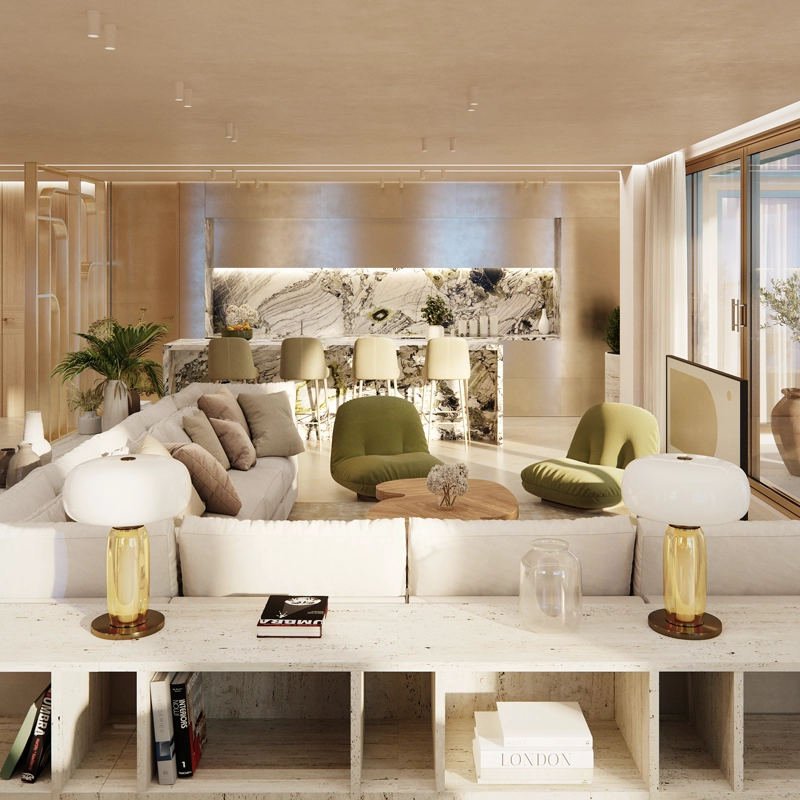 This exceptional four-bedroom penthouse is inspired by the Art Deco elegance of the Riviera and designed by Parisian aesthete Thierry Lemaire. Muted tones of marble and wood complement the coastline, while subtle copper and gold accents reflect the warmth of the Cypriot sun. Floor-to-ceiling windows flood the interiors with natural light, seamlessly connecting indoor and outdoor living.