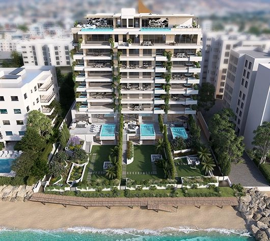 Set on the highest floors, the penthouse offers breathtaking views over Limassol, the beach, and the Mediterranean Sea. Multiple terraces and a private rooftop garden provide space for sunbathing, alfresco dining, or entertaining at the signature marble-topped bar. An infinity pool completes the rooftop oasis.