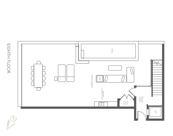 • Private rooftop garden with infinity pool and signature marble-topped bar