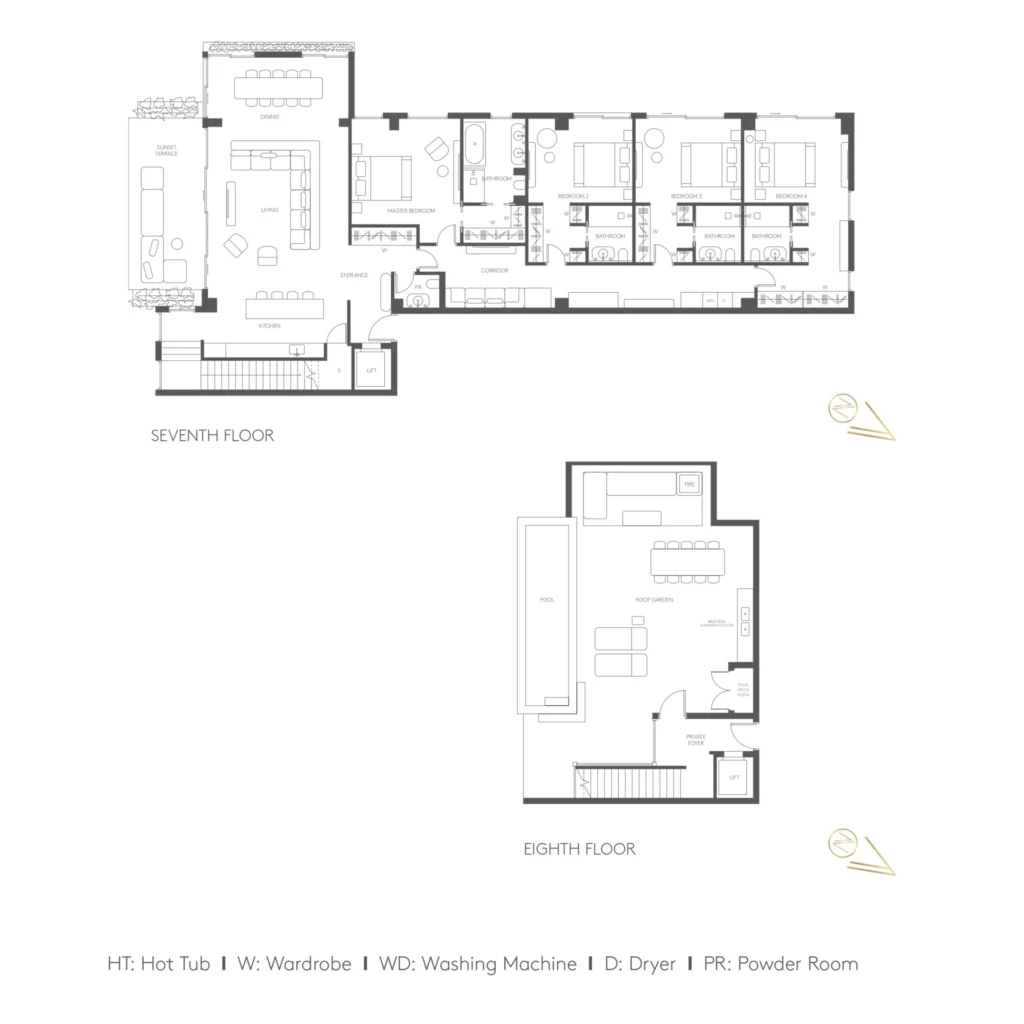 • Private rooftop garden with infinity pool and signature marble-topped bar