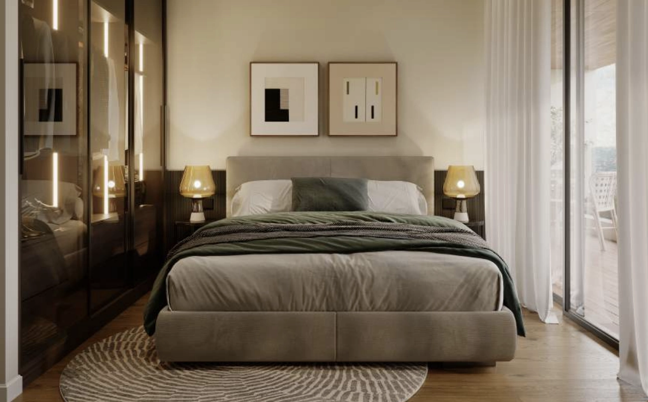The bedroom is designed to be cozy yet spacious, with room for wardrobes and additional storage solutions. Quality finishes, thermal insulation, and modern construction standards ensure a quiet and energy-efficient home. This apartment is an excellent choice for individuals, couples, or investors seeking strong rental demand in a growing area close to Larnaca.