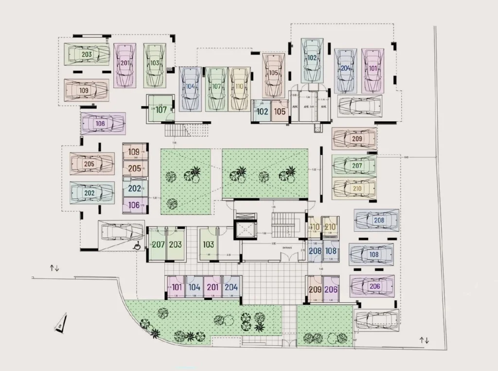 This is a residential project with 2 floors comprising 20 luxury apartments with 1-2 bedroom layouts. The project features modern, comfortable layouts, a well-designed master plan, spacious verandas, allocated storage rooms, professional landscaping, secure building entry, and covered parking spaces.