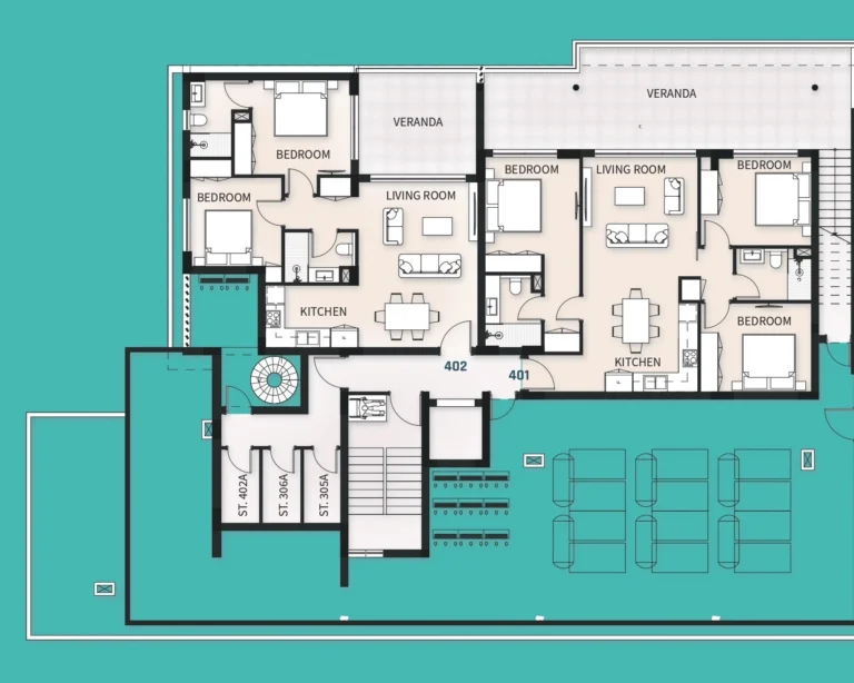 • Top-floor penthouse with added privacy