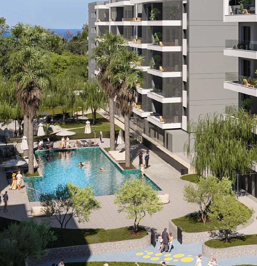Apartment for sale in Zakaki area, Limassol. The residential complex is designed for living, working and relaxing. It offers residents a fully equipped gym with wellness treatments, a cafeteria and a coworking space. Families can use the on-site kindergarten, and the green lawns and themed gardens will create a peaceful atmosphere for outdoor recreation.The project combines high-quality residential space with flexible commercial spaces and a variety of amenities: a secure entrance with a security post, an outdoor children’s playground, a yoga lawn, landscaped green areas, a public green area with walking paths, a guarded perimeter, charging stations for electric vehicles. Solar panels are installed.The residential complex is located in one of the most convenient areas of Limassol, just a few minutes from the port, marina and key business centers, close to shops, restaurants and beaches. From the complex 3 minutes to the sea, 3 minutes to a private school, 5 minutes to the MyMall shopping center, 8 minutes to Limassol marina.