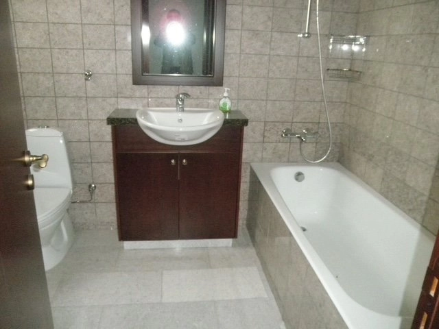 The house features four bedrooms, all with Irocco wooden flooring. The spacious master bedroom comfortably accommodates a separate seating area (sofa/TV space) and includes a walk-in closet and en-suite bathroom with toilet. A second bedroom also benefits from an en-suite shower and toilet, while a large family bathroom with bathtub is located along the upstairs corridor. In total, the house offers three bathrooms on the upper floor and a guest toilet on the ground floor.
