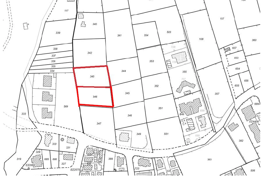 The property consists of two plots (343 and 346) with areas of 1,780 sq.m and 1,783 sq.m, totaling 3,563 sq.m. The plots are currently plain lands and are designated for tourist development under the Τ1β planning zone.