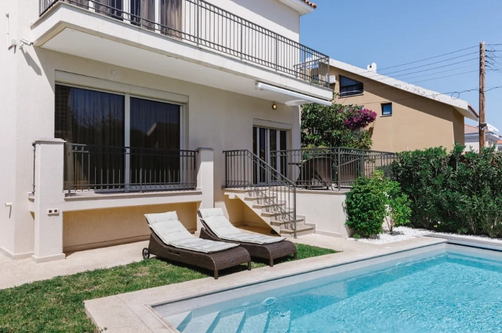A well-maintained three-bedroom house with a private swimming pool and a maid’s room, located in the desirable area of Potamos Germasogeia, Limassol, within walking distance of the beach. The property is situated in a quiet residential neighborhood, offering privacy and convenience.