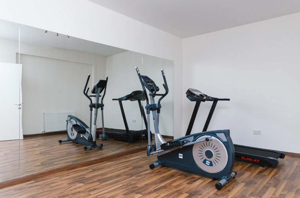 The house is fully furnished with high-quality handmade Italian furniture and features wooden parquet floors, a modern built-in Italian kitchen, full air-conditioning, and central heating. It is arranged over three levels. The upper floor includes a spacious master bedroom with a walk-in wardrobe and en-suite bathroom, as well as a guest bedroom with its own bathroom. The ground floor offers a separate kitchen, a bright living and dining area, a home office, and a guest shower. The basement level includes a gym, a maid’s room, laundry and storage areas.
