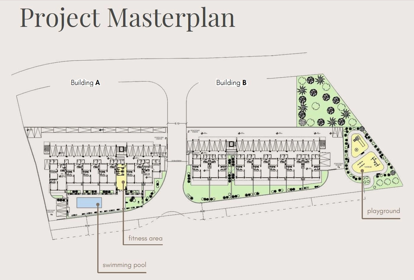 ✔ Residents-only fitness areas (Buildings A & B)