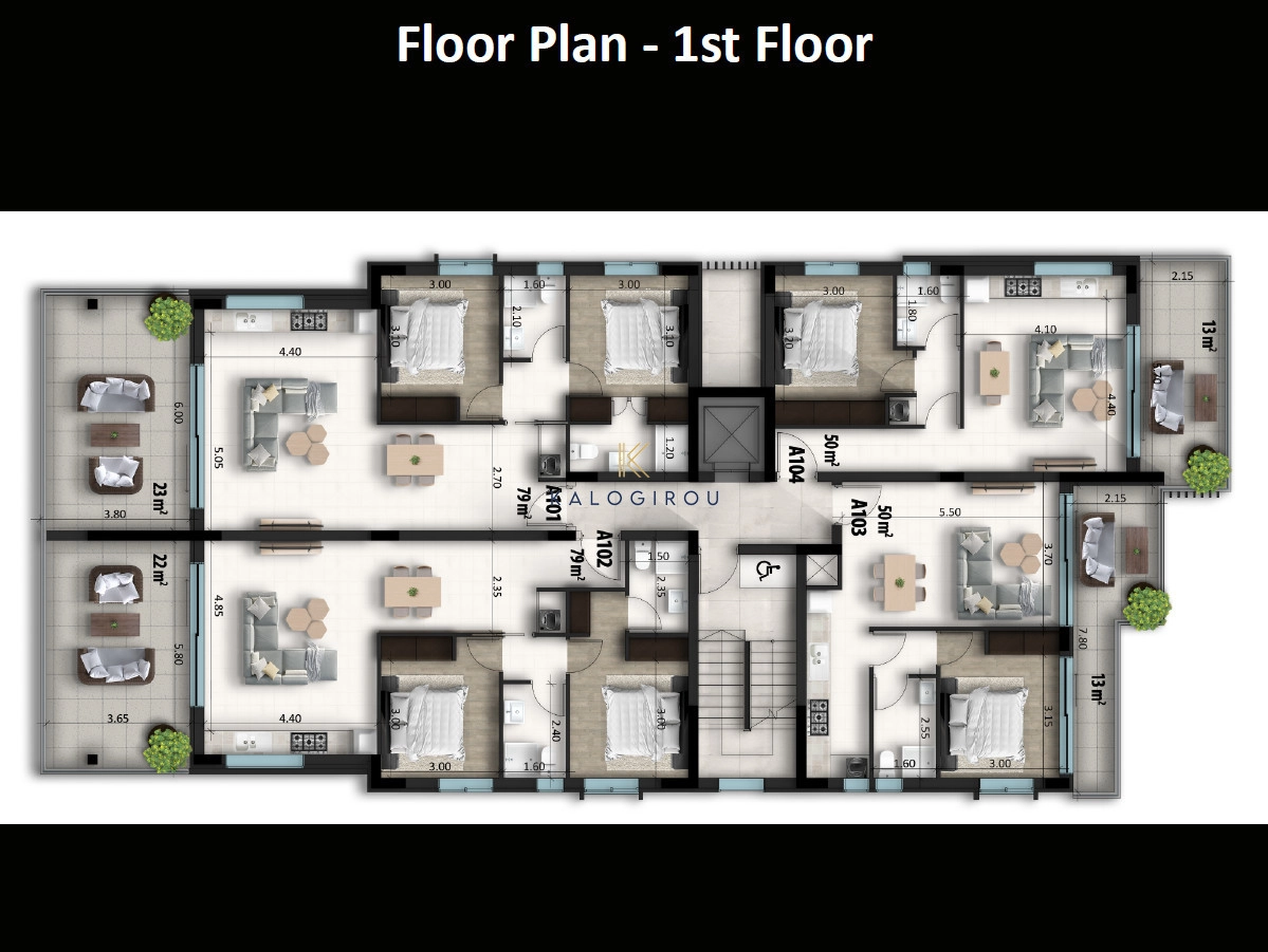 Sea View, Top Floor, One Bedroom Flat with Roof Garden in Livadia area, Larnaca. Amazing location, close to all amenities such as educational institutions & university, supermarkets, banks, coffee shops, pharmacies etc. A short drive to Larnaca Town Center, the harbor and the beach. Very easy access to Larnaca, Nicosia motorway. Larnaca International Airport is only 14 minutes away.