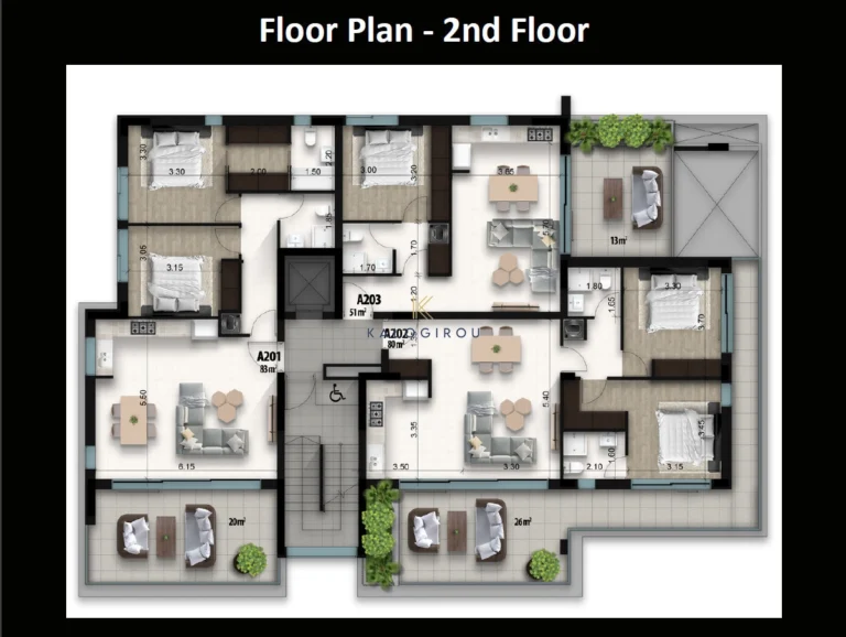 Second Floor Apartment for sale in Larnaca, Faneromeni area. It consists of an open plan kitchen, living & dining area, two bedrooms, en suite shower in the master bedroom, main bathroom and big covered/uncovered veranda. In addition, the apartment has private covered parking on the ground floor and storage on the roof top.
