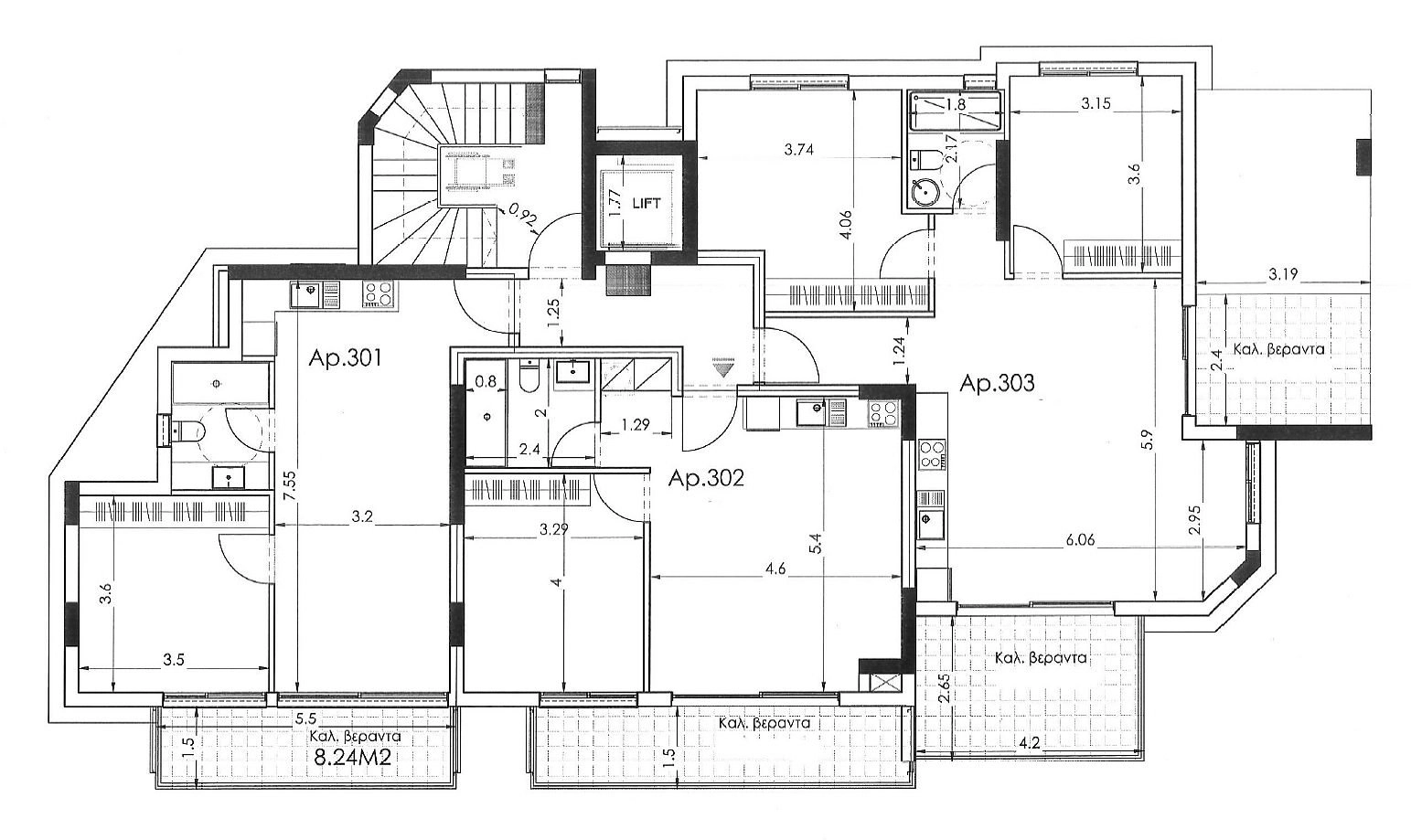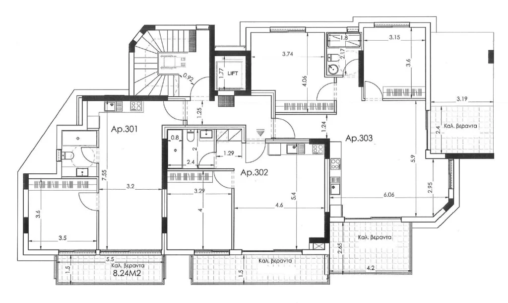 One-bedroom apartment 301 with a total area of 63 m² is located on the third floor of a three-storey residential building.