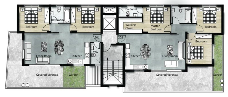 The project is intentionally limited in scale, comprising just six thoughtfully planned apartments. Spacious two- and three-bedroom residences are designed with an emphasis on proportion, natural light, and everyday comfort, reflecting a contemporary aesthetic that feels both practical and understatedly elegant.