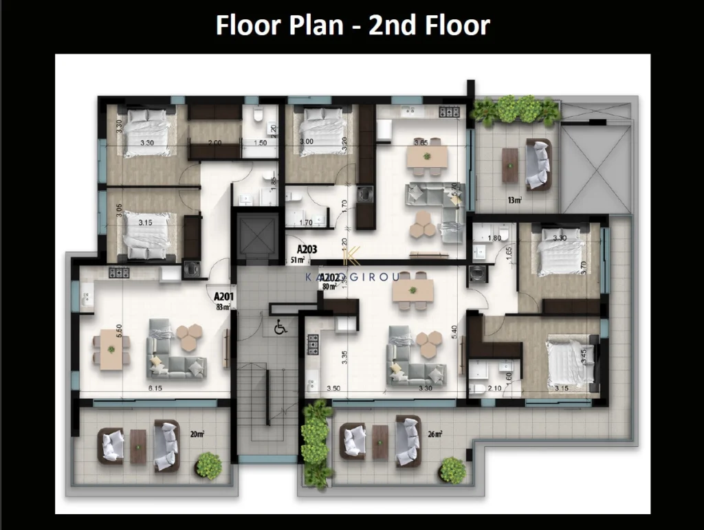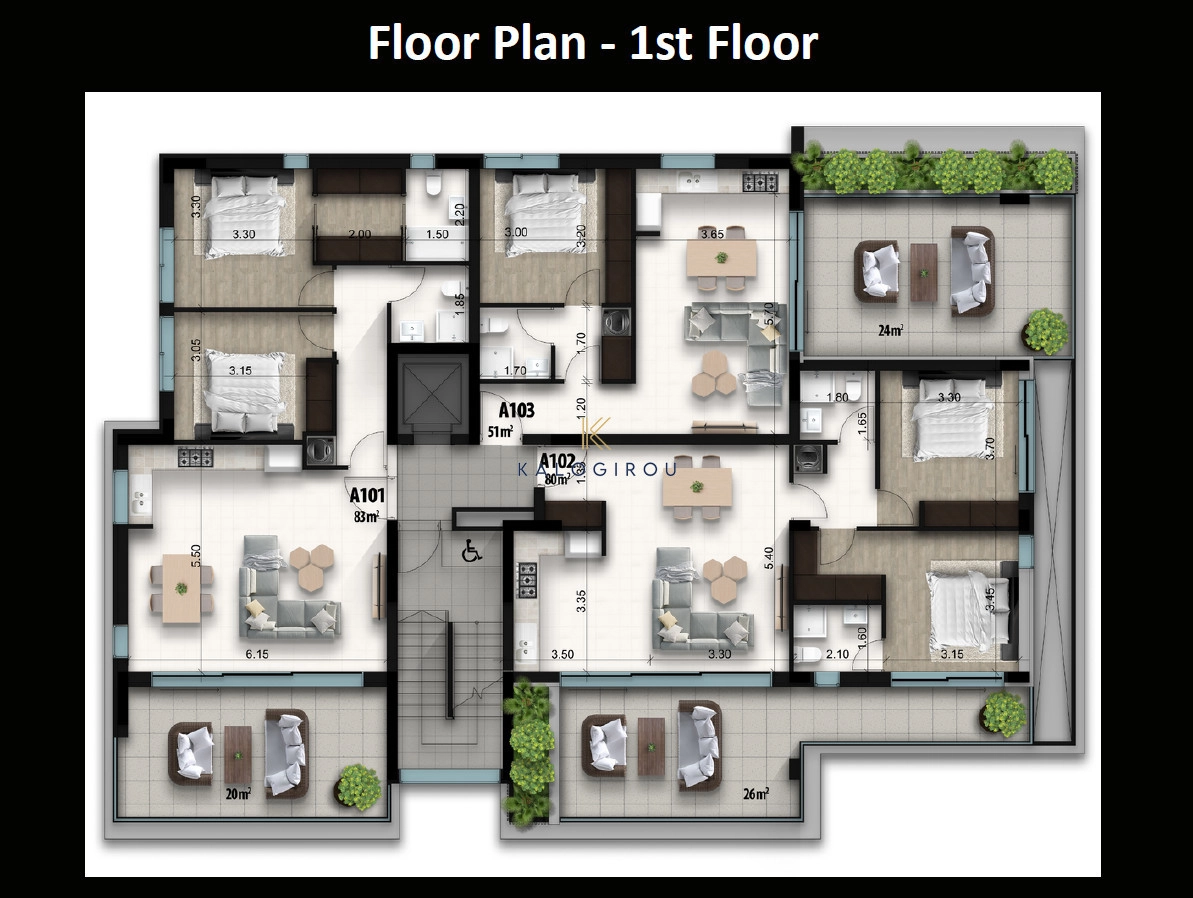 Apartment for sale in Larnaca, Faneromeni area. It consists of an open plan kitchen, living & dining area, one bedroom, one bathroom and covered/uncovered veranda. In addition, the apartment has private covered parking on the ground floor and storage on the roof top.