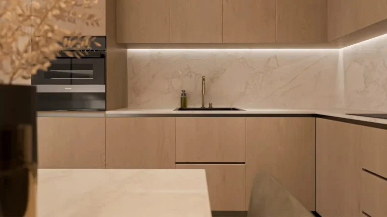 The open-plan living and dining area is seamlessly connected to the kitchen, creating a bright and functional space for daily living. Large windows enhance the sense of openness, while the bedroom provides a private and comfortable area with adequate space for storage. The apartment includes one modern bathroom, finished with quality materials to ensure durability and ease of maintenance.