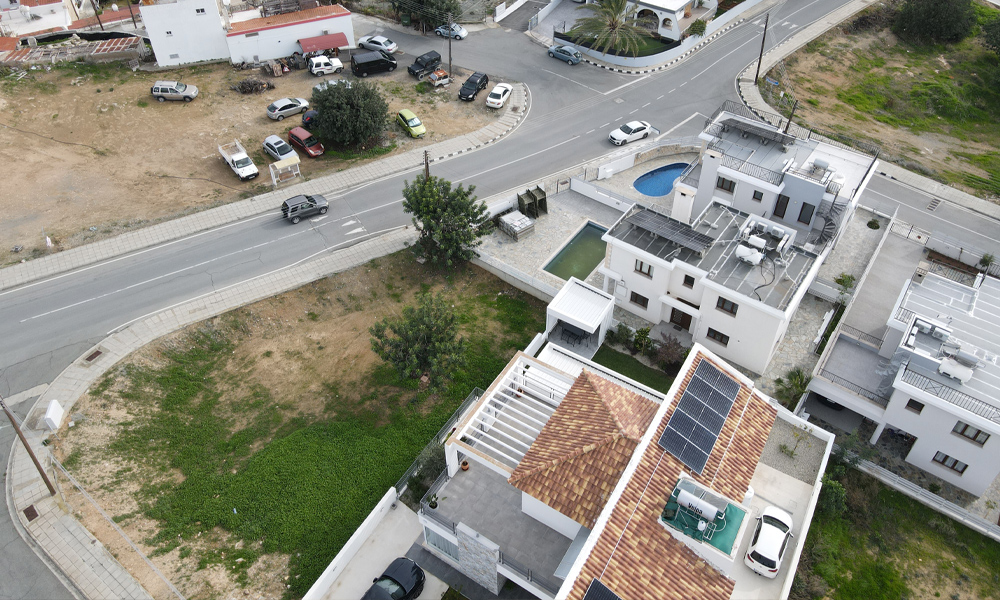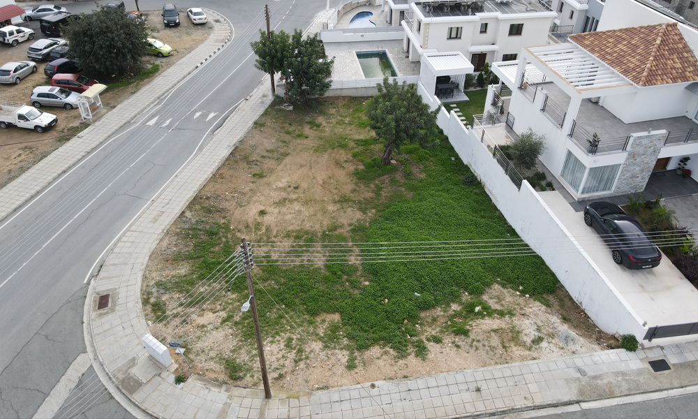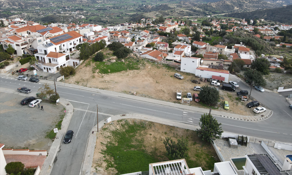 Residential building plot for sale in Pissouri, Limassol District, Cyprus (MOUTTI area). Corner plot with road frontage on Helen of Troy Street (north) and Stadiou Street (east).