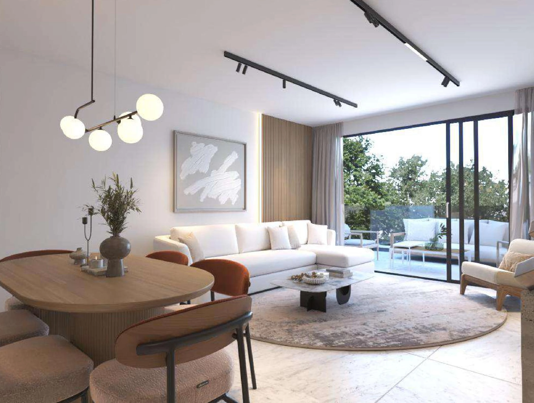 2 bedroom apartment for sale in a quiet area of Pyla, Larnaca, just 2.5 km from the sea. The complex consists of only six apartments in a minimalist style with elements of natural wood, landscaped grounds, parking and storage rooms. The convenient location provides quick access to the center of Larnaca, the airport, shops and the university.