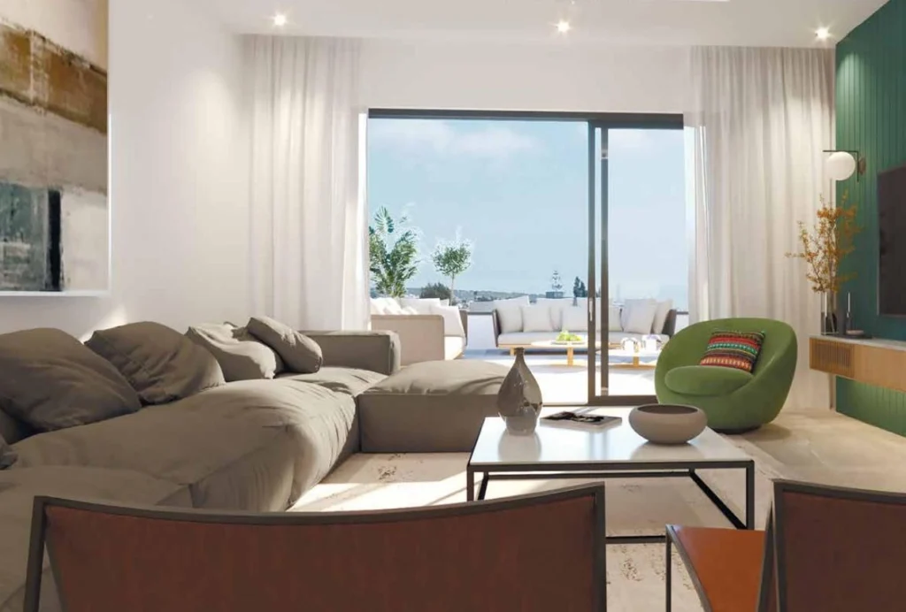 New 2 bedroom apartment for sale in Frenaros. The project of 12 modern, ergonomic apartments is located in a quiet, peaceful area, with a convenient transport interchange, just a 5-minute drive from the center of Paralimni, a 7-minute drive from the nearest beach. Spacious living room with open plan kitchen, covered and open verandas.