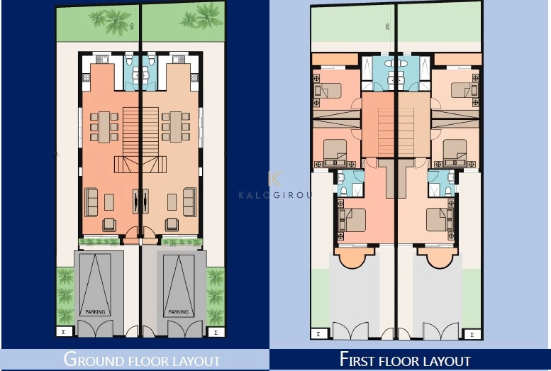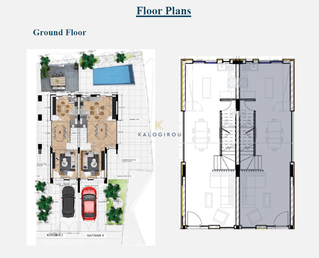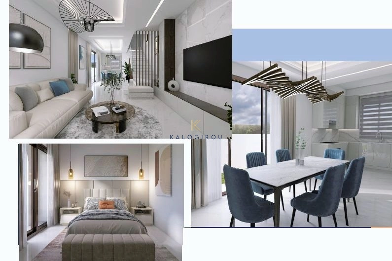 The property is a part of a modern complex of 10 houses in the new developing and fast growing area in Livadia. This project is comprising double story semi-detached houses with unique interior design featuring 3 bedrooms, 2 bathrooms, guest toilet, verandas with beautiful view of the neighborhood, private gardens and parking spaces. Al the houses have a modern open plan layout with custom made kitchen, fitted wardrobes, large double glazing windows, marble looking porcelain flooring and more.