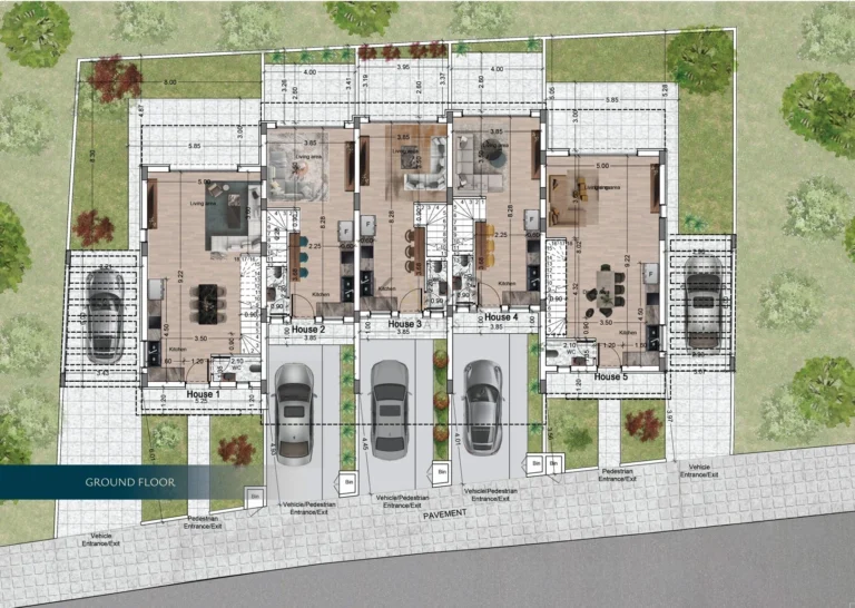 The property is a part of a modern complex of 10 houses in the new developing and fast growing area in Livadia. This project is comprising double story semi-detached houses with unique interior design featuring 3 bedrooms, 2 bathrooms, guest toilet, verandas with beautiful view of the neighborhood, private gardens and parking spaces. Al the houses have a modern open plan layout with custom made kitchen, fitted wardrobes, large double glazing windows, marble looking porcelain flooring and more.