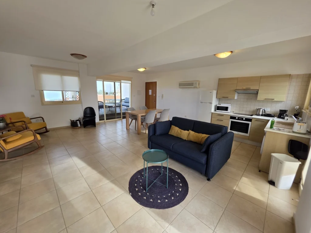 Two-bedroom penthouse for sale in Agia Triada, Famagusta. Located just 100 meters from the beach with direct pedestrian access to the sea. The indoor covered area is 80 m2, the covered veranda is 20 m2 and the spacious roof garden is 104 m2 with open views. The layout is bright with an open living area. The apartment has one bathroom, air conditioning, parking and title deeds. The property is located in a quiet residential area close to shops, restaurants, schools and all necessary infrastructure. The penthouse is perfect for living, relaxing or investing with high profitability potential.