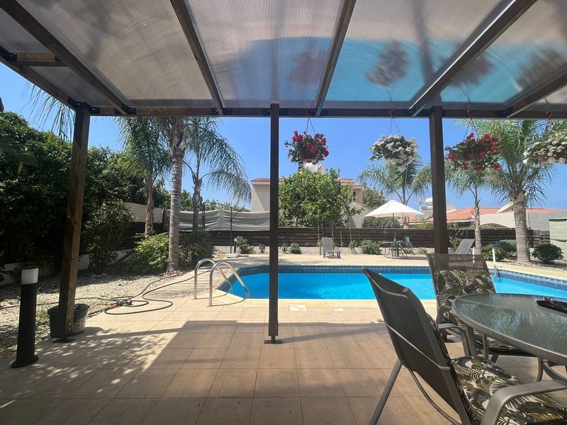 Four Bedroom Detached Villa For Sale in Emba, Paphos – with Title Deeds This villa is located in the charming village of Emba, and is set within a mature, landscaped garden that creates a private, tranquil living environment. The property combines generous indoor space with high-quality finishes and modern energy-efficient systems, making it suitable both as a permanent residence and a high-end holiday home. The villa features four bedrooms, including a spacious 22 m2 ground-floor room that can easily be used as a bedroom, office, dining room, or playroom. Interior finishes include granite floor tiles, marble stairs, and electric underfloor heating throughout all rooms, with additional heating in the bathrooms. The living areas are complemented by a fireplace with a specially designed oven and door, adding warmth and character to the home. Outdoor living is a key highlight of the property. The villa boasts an 8 x 4 metre (32 m2) tiled swimming pool with cover, shower, sunbeds, and umbrellas, as well as a covered pergola on the ground floor ideal for shaded relaxation. Two covered balconies offer sea and sunset views, while the barbecue area with storage makes the space perfect for entertaining. A large garden surrounds the villa, planted with a variety of fruit trees The home is equipped with modern conveniences and sustainable features, including a 4 kW solar photovoltaic system for electricity production, solar and electric water heating, a pressure water system, double-glazed windows with metal shutters, and air conditioning in all rooms. Additional practical spaces include a storeroom/laundry area under the stairs. Villa is unfurnished but includes Appliances. - 4 Bedrooms with fitted wardrobes - Open plan living – dining area - Family bathroom - W/C - Air-conditioning system - Solar system for heating water - Underfloor heating - Photovoltaic - BBQ Area - Unfurnished - Large Garden with Fruit Trees - Parking area - Internal area 220 m2 - Plot area 575 m2 - Close proximity to a number of English speaking private schools - 9 Minutes to the nearest beach - 19 Minutes to the nearest golf course - 23 Minutes to Paphos International Airport - Suitable for Cyprus Permanent Residency - Energy Efficiency – TBC Emba Emba is one of the largest villages in Paphos located approximately 4 km north of Paphos Town. Here you will find the ancient church of Panayia Chryseleoussis, built in the 12th Century this church holds prime position within the village square. Emba has a few shops, tavernas and a theatre dotted along the narrow winding road which runs through the village. This is an extremely traditional village, most days you will see the Cypriot men sitting outside their local coffee shops often spilling out onto the streets drinking coffee, putting the world to rights and playing a local board game tavli (Cypriot alternative to backgammon). Emba sits 135 m above sea level. ———— * Title Deeds * Landscaped garden * Photovoltaic * Suitable for Cyprus Permanent Residency * Close to all amenities * Resale * Energy efficiency TBC Emba Emba County: Paphos Sale Type: For Sale Ref #: EPCC5811