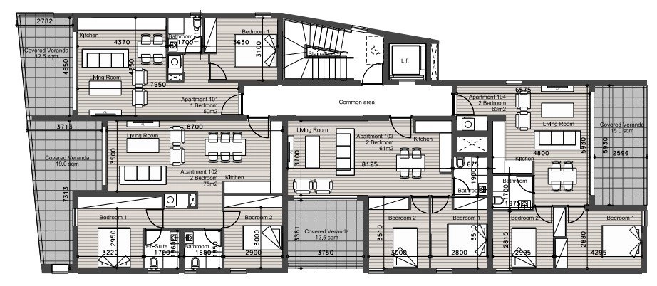 The project features a curated collection of one- and two-bedroom apartments, thoughtfully arranged across three floors. Interiors are defined by impressive ceiling heights, expansive thermal aluminium windows and open-plan layouts that maximise natural light and spatial flow. Italian-designed kitchens and wardrobes, European ceramic tiles and semi-solid parquet flooring introduce a refined material palette, while penthouse residences offer private roof gardens with provisions for BBQ areas, jacuzzis and aluminium pergolas — creating elevated outdoor retreats above the urban landscape.