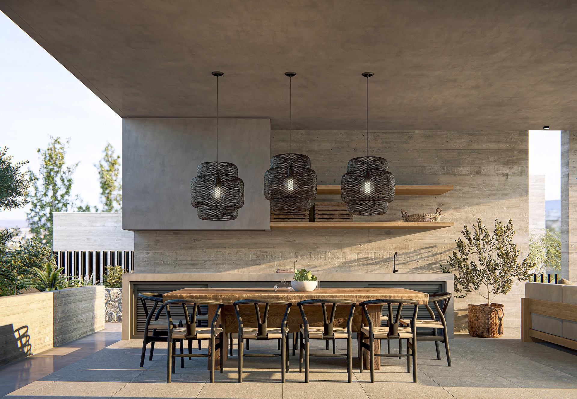 The design approach prioritizes timeless architecture, blending contemporary elegance with natural materials to create a refined yet enduring aesthetic.