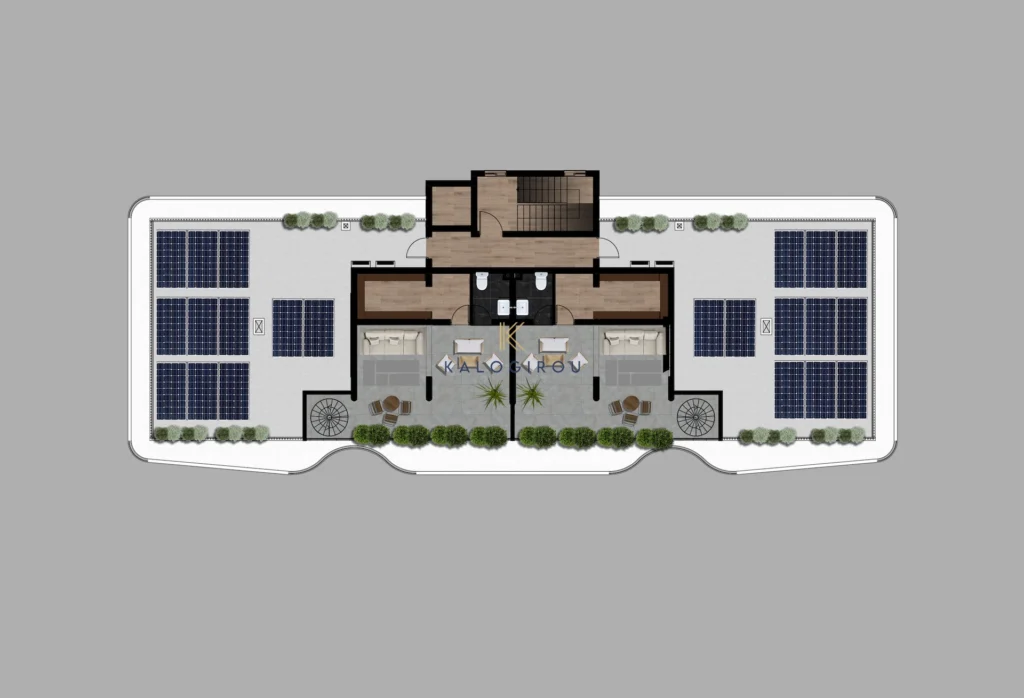 Third Floor apartment, for sale in Livadia area, Larnaca. It consists of an open plan kitchen-living-dining area, two bedrooms, master bedroom en suite with shower room, common bathroom and big covered veranda. Moreover, the apartment has private covered parking and store room.
