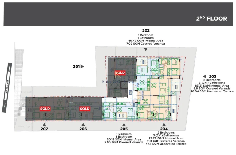 Third Floor apartment, for sale in Livadia area, Larnaca. It consists of an open plan kitchen-living-dining area, two bedrooms, master bedroom en suite with shower room, common bathroom and big covered veranda. Moreover, the apartment has private covered parking and store room.