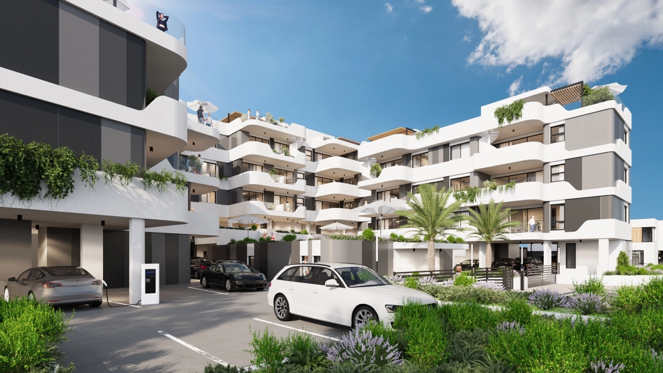 The development consists of 34 units, including 6 commercial-use units, thoughtfully integrated into the overall design. Architecture and layout are focused on everyday comfort, with spacious terraces, green elements, and carefully planned communal spaces. A private inner courtyard with a swimming pool serves as the heart of the complex, creating a calm, resort-like atmosphere for residents.